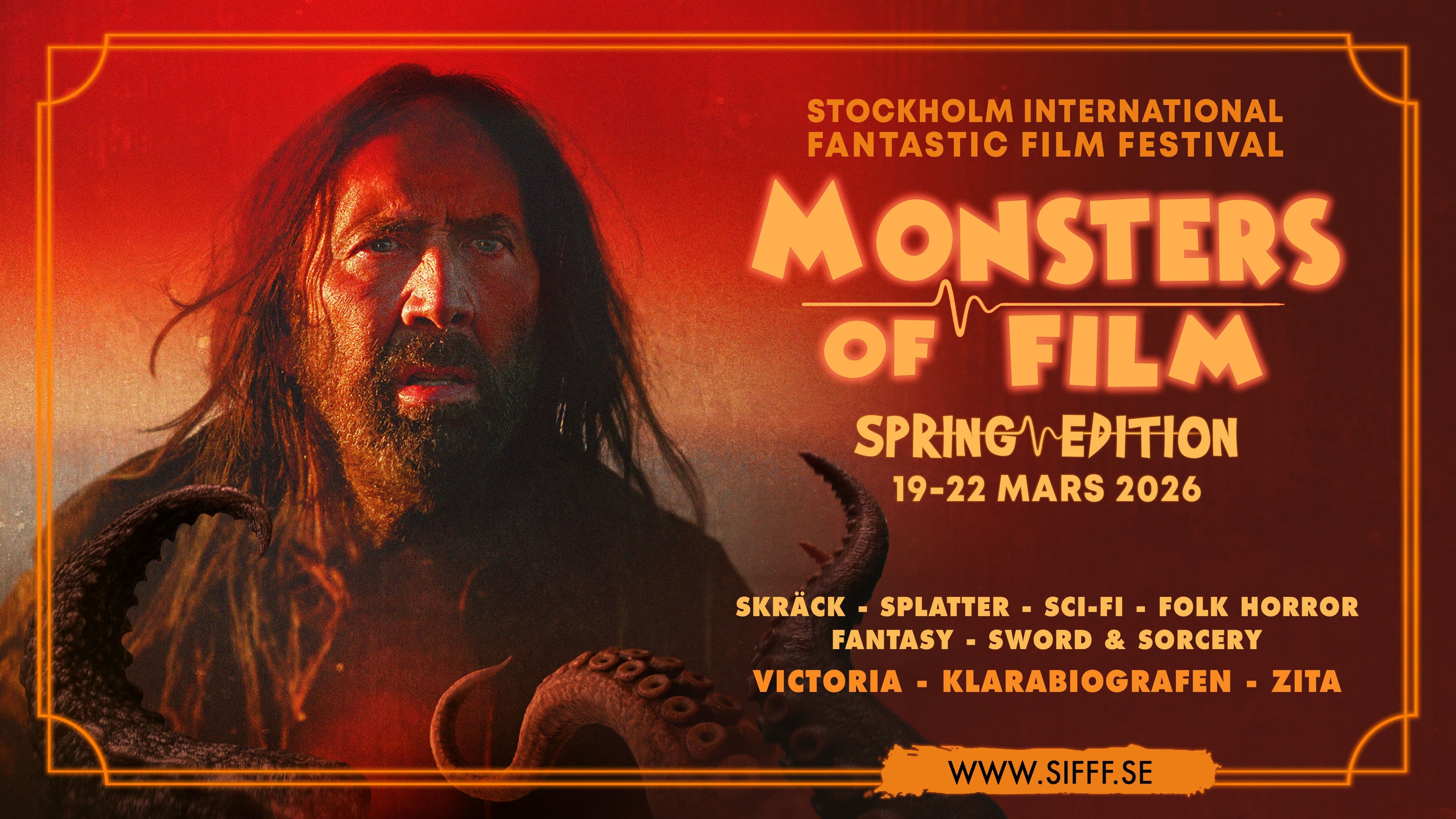 Monsters of Film: Spring Edition 2026 har valt ut ett knippe rykande färska skräck- och fantasyfilmer som kan avnjutas på Klarabiografen, Zita Folkets Bio och Victoria 19-22 mars.